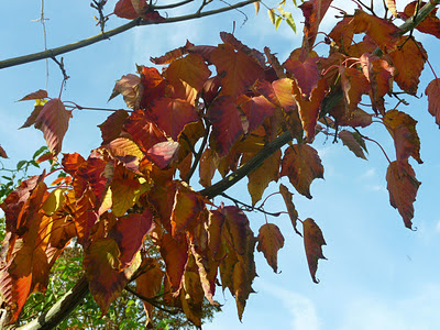 My beautiful snake-bark maple tree's leaves are turning glorious colours,
